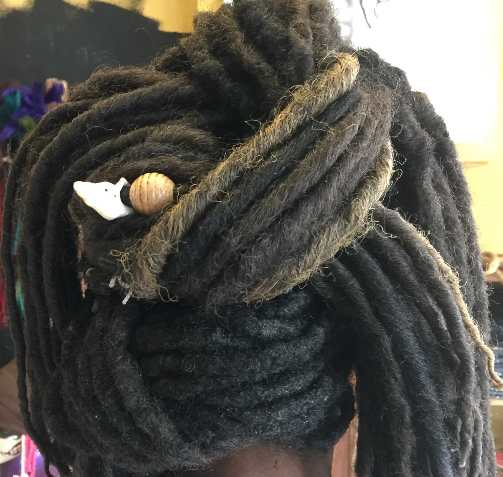 Old school method common in the 90’s with caucasians. PROS: Creates instant “dreadlocks” (or at least the shape of them!) CONS: Wax attracts dirt and dust and this gets trapped in the shaft of the lokk, impossible to clean out; depending on wax type used, can be hard as a rock and uncomfortable to sleep on; lokks are hard and unnatural in their movement; significant loss of length with backcombing; palm rolling traps oils from hands in the dread shaft that result in additional buildup; wax is VERY difficult to remove and sometimes impossible. Cannot be combed out.